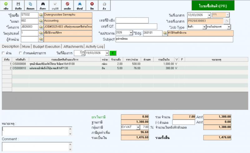 โปรแกรมบริหารงานฝ่ายจัดซื้อ